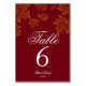 Burgundy och guldblad Höstbröllop Bordsnummer