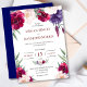 Burgundy och marinblå Peony-Blommigten Bröllop Inbjudningar