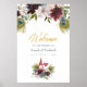 Trendig Border - marsala och marsala blue vin temed peafowl bröllop Welcome poster med accents of damsty blue, rosa, plum and ro guld med vild woodland forest eukalyptus grey.
