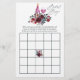 Trendiga burgunderröda och marinblå (marsala och indigo) boho bröllopsdusch-bingokort som kan anpassas till ditt evenemang.