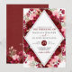 Burgundy och rosa blommigt bröllopsinbjudan, diamantformad. Anpassa namn, data och information.