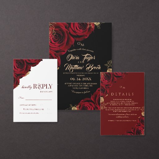 Burgundy och svart ⎮ Röd ros Blommigt Bröllop Inbjudningar