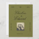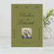 En stilfull, vintageinspirerad "spara datum"-kort med en rik olivgrön bakgrund, klassisk typsnitt och en anpassningsbar fotolayout. Accentuerad med djupa burgundertoner är denna eleganta design perfekt för par som planerar ett tidlöst, romantiskt eller modernt klassiskt bröllop. Anpassa namn, datum, plats och foto för att tillkännage din speciella dag med charm och sofistikation.