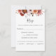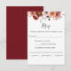 Fin burgundi och blommigt OSA kort på spanska. Möjlighet att ändra eller ta bort alternativ för måltidsinmatning. Samma OSA finns också på engelska. Utformning med blommigt i mjuka , persikofärgade, rosa- och burgiga marontoner. Kortets baksida i en burgundisk Marsala-ton. Utforma en samordning med våra burgundiska Quinceañera-inbjudningar.