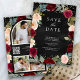 Burgundy Peach Blommigt Photo Black QR-kod Bröllop Spara Datumet