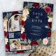 Burgundy Peach Blommigt Photo Navy QR Code Bröllop Spara Datumet