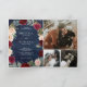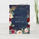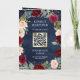 Burgundy Peach Floral QR Code Navy Blue Wedding Inbjudan