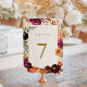 Burgundy + Peach Watercolor Blommigt Bröllop Bordsnummer