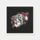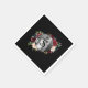 Gorgös och elegant , burgundisk och blåa blommor på en svart bakgrundsnapkin. Absolut vacker. Anpassa med ditt personliga monogram och foto omgivet av en vacker blommigt för att matcha pappert tallrikar som vi också erbjuder i vår butik. Så elegant och modern. Perfekt för din speciella dag. Spara på din budget genom att skicka matchande vykort för Spara datum.