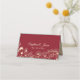 Modern, elegant, chic rött burgunskt bröllop-platskort med blommor från guld.