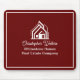This professional realtor mousepad is custom made with your real estate company name under the modern cursive script for an open house. These chic burgundy custom realty business promotional items feature a house logo image for home builder or realty agent company marketing.