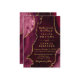 Make a bold and elegant first impression with this burgundy red and gold agate marble wedding invitation. Featuring rich jewel tones, organic stone textures, and shimmering gold accents, this invitation is perfect for couples planning a luxurious fall or winter wedding. The rich wine and crimson hues paired with metallic gold detailing create a dramatic yet refined look, ideal for formal, modern, or glamorous celebrations. Fully customizable to match your wedding details, this agate-inspired wedding invite adds timeless sophistication to any seasonal event.