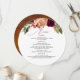 Burgundrött och orange blommor faller under bröllopsmenykort