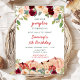 Den här söta och vismliga vattenfärgen födelsedagsfest inbjudan har burgudröd och rosa pumpor och blommigt. Texten kombinerar handskript och sans serif typsnitt för en snyggt och ett modernt utseende. Det här är perfekt för en höstfallande födelsedagsfest. Grafik efter www.etsy.com/uk/shop/SunflowerDayLove