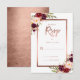 Vackra burgundöda bröllop OSA med röd blommigt, faux ro guld-folie och handskrivna manus. Kortets baksida är en tryckt fotompeffekt på ro guld. Bröllbjudan till chic Ro Gold Foil Blommigt som finns i butiken. Anpassa med bröllopet OSA