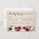 Burgundy Red Rustic Boho Chic Bröllop OSA Cards. Med en bohemisk inspirerad blommigt med burgundi, marsala och rosa vattenfärgblommor på en träbakgrund.Hitta mer överensstämmande design och variationer i min "blissweddingpaperie"-butik. Och kontakta mig gärna om du vill ha anpassningsbar.