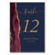 Burgundy Red Guld Agate Navy Blue Bröllop Bordsnummer