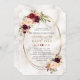 Burgundy Red Marsala Blommigt Guld Marble Bröllop Inbjudningar
