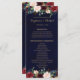 Burgundy Red Navy Blommigt Rustic Boho-programkort Program