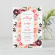 Den här söta och vismliga inbjudan till bröllop med vattendjup innehåller färgstarka blommor i burgundröd och rosa med grönt löv. Texten kombinerar handskript och sans serif typsnitt för en snyggt och ett modernt utseende. Det här är perfekt för vår eller sommar bröllop.
