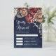 Burgundy Red Roses Floral Navy Blue Wedding OSA Kort