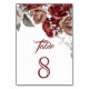 Elegant burgundy floral theme wedding table number featuring beautiful flowers.
