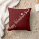 Burgundy Red Valentine's day Heart Script Dekorativ kudde. Baksidan har vita hjärtan på en burgundröd bakgrund.
