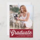 Meddela din studenten till familj och vänner med anpassadets fotomeddelande om studenten. Den har ett fet återtro-skript och klassisk typografi. Anpassa genom att lägga till information. Detta burgundy studenten-meddelande finns tillgängligt i andra bilar och färg.