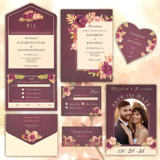 Burgundy Ro Boho Photo Bröllop spara datum Spara Datumet