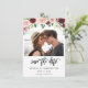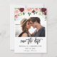 Få dina gäster upphetsade och redo att fira bröllop eller party med ditt Burgundy & Rosa 4 Blommigt Foto Save the Date Card.