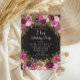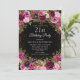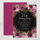 Elegant och romantisk rosa, burgundy och lila akvarell vintageblomma och löv på svart anpassad 21-års inbjudan med guldglitter. Personlig inbjudan med namnet på hedersgästen.