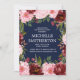 Burgundy Rosa Blommigt 90:e födelsedag för marinbl Inbjudningar