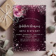 Burgundy rosa blommigt glitter födelsedag inbjudningar