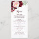 Burgundy Rosa Blommigt Greenery Bröllop Meny