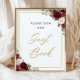 Burgundy Rosa Blommigt Underteckna gäst Bok Poster