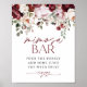 Burgundy Rosa Flowers Mimosa Pub Shower Sign Poster