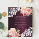 Burgundy rosa ros blommigt snöre bröllopsinbjudan
