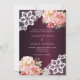 Burgundy rosa ros guld blommigt snöre bröllop inbjudningar