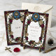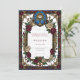 Celebrate your special day with this exquisite wedding invitation, inspired by the timeless beauty of stained glass art. The intricate design features a vibrant border of deep burgundy and creamy white roses, intertwined with ornate gold scrollwork and religious symbols. At the top, a dazzling circular stained glass motif depicts a sacred monstrance, perfect for a religious ceremony. This elegant invitation sets a tone of classic romance and sophisticated celebration for your wedding. It's ideal for couples seeking a unique and artistic announcement for their union, ensuring your guests feel the grandeur of your upcoming event.