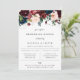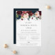 Elegant akvarellblommig arrangemang i burgunderrött, rosaskymning rosa, marinblått och frodiga gröna nyanser, inbjudan till övningsmiddag. Chic och modern typsnittsdesign. Baksidan av kortet har en solid mörk marinblå färg.