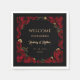 Modern stylish wedding welcome napkin, burgundy with gold dust on with a gold ink pour effect (the gold is a digital effect, not real foil!) and modern calligraphy.