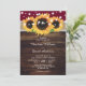 Den burgniga bröllopsinbjudan till blommigten som innehåller solblommor mot ett trä-, burlap- och snöre-bakgrund är perfekt för att bjuda in dina gäster till din burgunda, rustiska bröllopsfest som inspirerats av solblommor. Enkel att anpassa mallen.