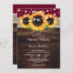 Burgundy Rustic Burlap och Snöre Solros Bröllop Inbjudningar