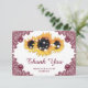 Burgundy Rustic Chic Snöre Solros Bröllop Tack Kort
