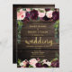 rosa och burgundi; en lavit blommigt möte av djupa burgundröda blommigtar av tranbär med ädelrött rosa av blek mot en höggradig mörk av rik med brinnande vattenfärgbakgrund med guld sintrade bröllop-kalligrafi med formell layout. Inbjudan kan anpassas till vilket tillfälle som helst.