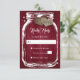 Rustiska burgundkort för anpassningsbar med två bröllop OSA mot en lada med burk med två burkhjärtan mot en lada. Två brännhjärtan på en burgundisk, rustik träbakgrund på baksidan. Anpassa enkelt kortets online med dina bröllop-uppgifter. Matchande artiklar som är tillgängliga för att komplettera dessa söta, rustiska burgunda bröllop OSA.