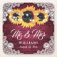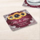 Burgundy Rustic Wood Snöre Solros Bröllop Underlägg Papper Kvadrat