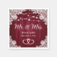 Dekorera din burgundiska, rustiska bröllopsfest med den romantiske Mr och bröllop pappra servetter som har flätade hjärtan mot en rustik träbakgrund som är försedd med elegant blommigt snöre och sträng ljus.