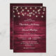 Burgundy Rustic Wood String Ljus Bröllop Inbjudningar