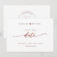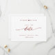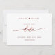 Berätta din bröllop-dejt med det vackra bröllop spara datum-kortet. Modern skriftlig skriptinformation i burgundy faux foil både fram och tillbaka. Tillbaka med den unika Spara datum frimärke/monogram med par namn. Rena och enkla stil. Vit och burgundär design. Område till bröllop webbplats, mer information eller/och meddelande till dina gäster (t.ex. "Kan inte vänta tills du ser dig där!").